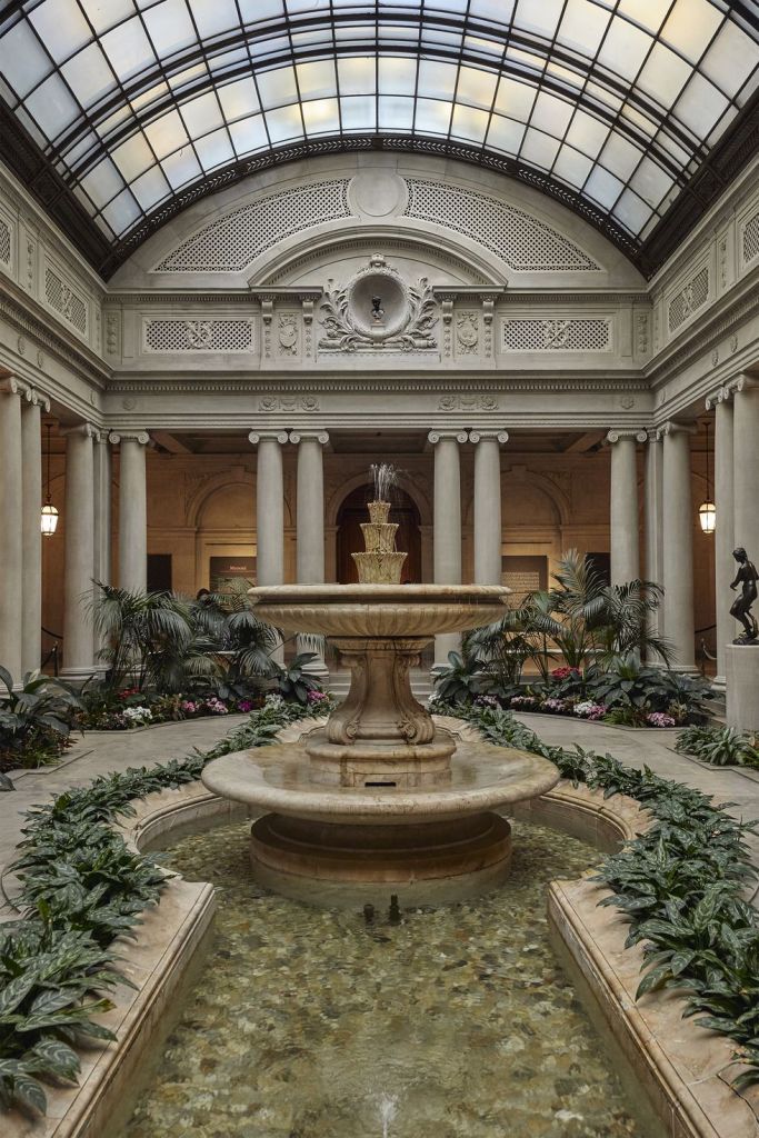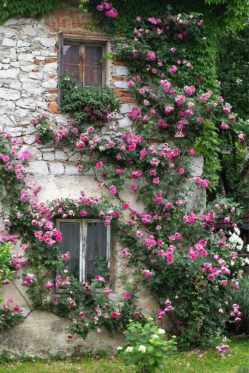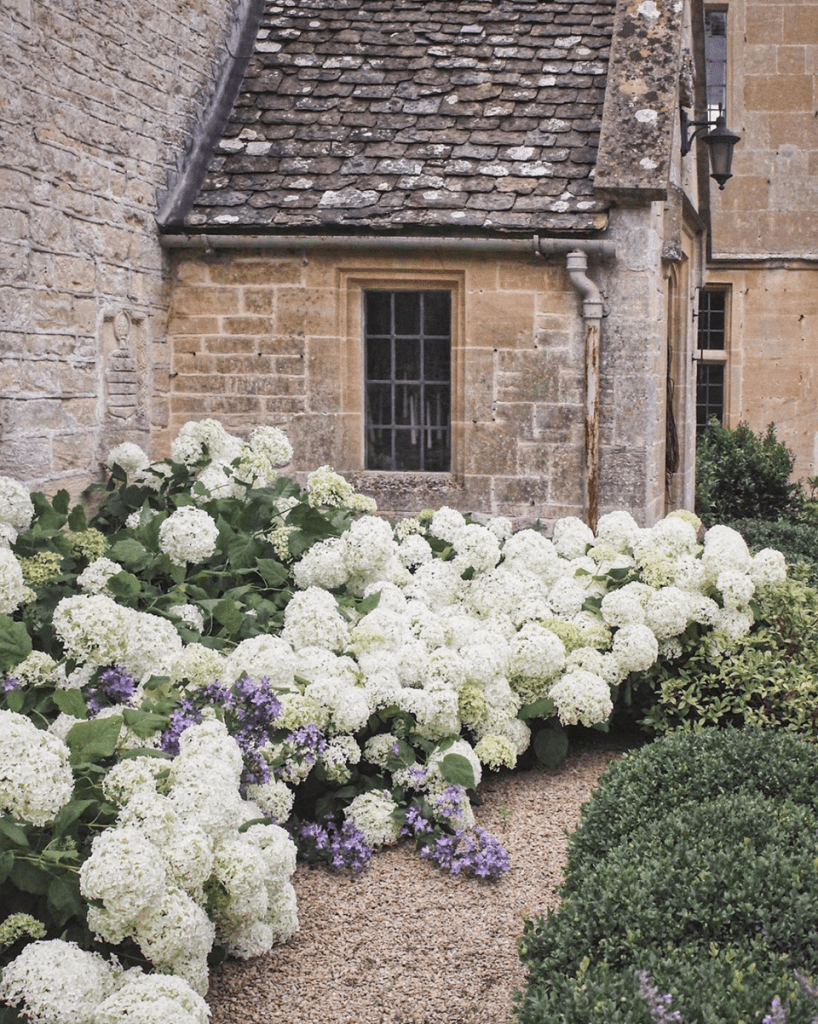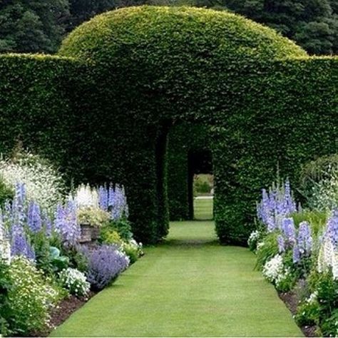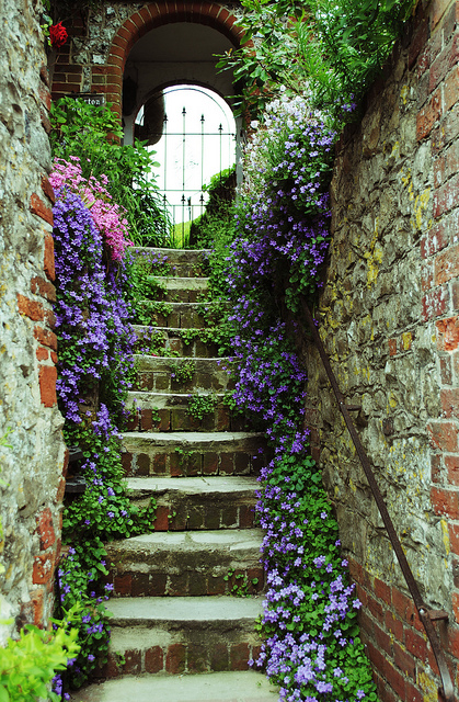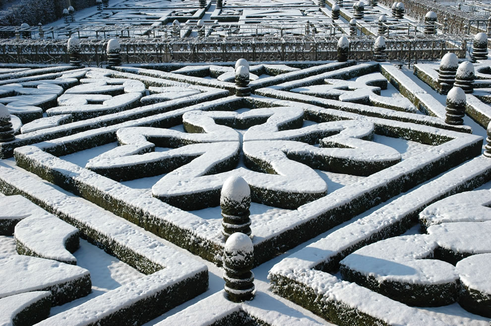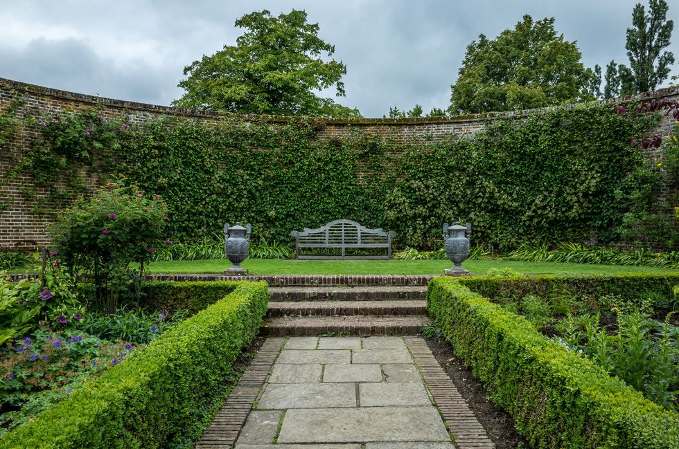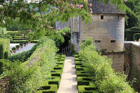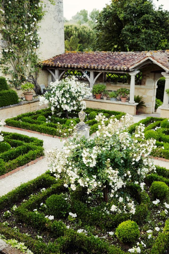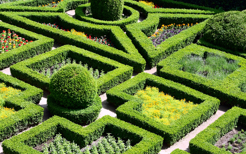 The formal gardens are symmetrically arrangement of pathways and beds with low box hedges and flower borders. Surrounded by climbing plants, trellises and clipped hedges. Surrounding the formal garden are cottage style gardens with dense plantings with a mixture of plants of annuals and perennials. Flowers are planned to be over planted in this area with only pathways having open space.