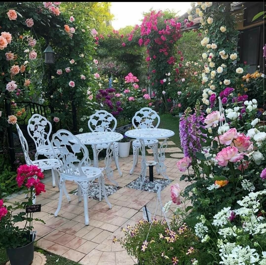 Flowers in this area include peony, rose, lily, butterfly pea flower, rhodochiton atrosanguineus, lobelia siphilitica, sweet pea, white honeysuckles, lavender, forget-me-not and lilac.
