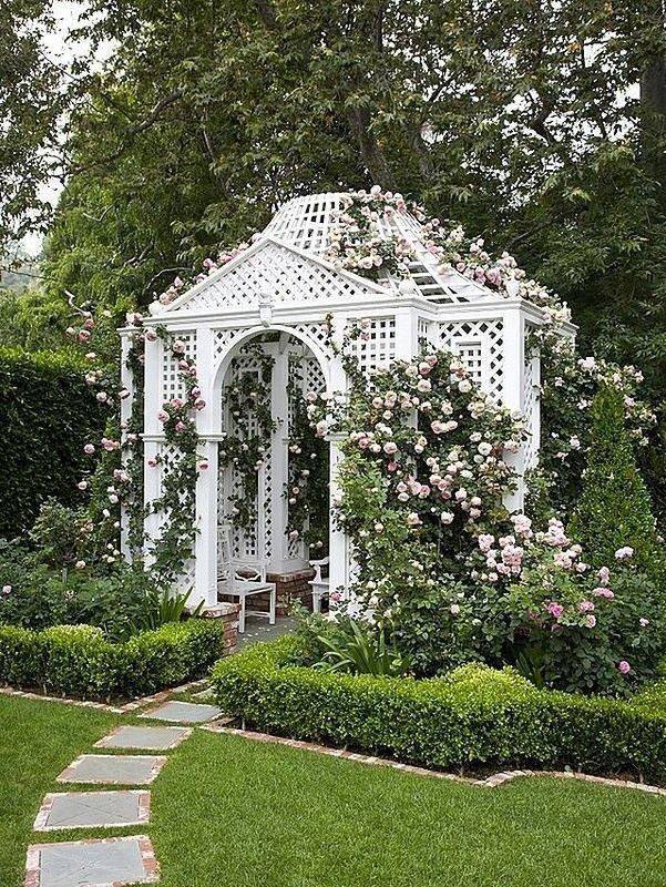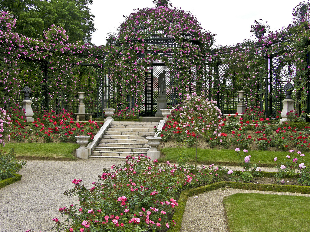 The rose garden is the centerpiece of the romantic gardens, and is divided from the rest of the garden with tall rose shrubs and archway entrances. Pergolas covered with climbing roses will provide shade on sunny days, and at the center of the rose garden there will be a rose-covered gazebo. The gazebo will be large enough to fit ten to twelve people and can function as a stage for weddings and concerts with seating below in the garden. Other seating areas in the garden will be under the shade of the pergolas, surrounded by rose-covered stone walls and rose shrubs each seating 4-5 persons perfect for teatime.