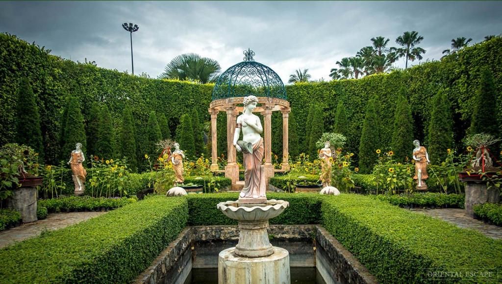 The lover’s garden is a highly secluded area of the romantic gardens with several cut away areas for small two person table. The area is covered with highly scented, lattice overgrown flowers with near high walls. The flowers inside this garden consist of contrasting colors to allow people to tell they entered a new area. Water features and romantic statues surround the area.